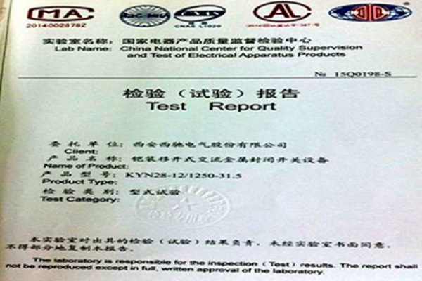 近日,公司電氣成套柜家族新品,鎧裝移動開式交流金屬封閉開關設備(KYN28)柜子,取得國家電器產品質量監督檢驗中心型式試驗報告。報告的取得進一步確保了公司該類產品的全面上市銷售。作...